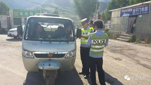 为切实加强武威市天祝县农村道路交通安全管理工作,坚决防止较大以上交通事故发生,确保夏季农村地区道路交通形势持续稳定,依据省公安厅下发的《关于在全省农村道路开展八个严禁专项行动的通告》要求,天祝县公安局迅速安排部署,在天祝县19个乡镇农村道路开展“八个严禁”专项行动,采取流动巡逻、设卡盘查、严查严惩等措施,掀起了农村道路交通安全隐患排查和严查农用车交通违法行为的新高潮。